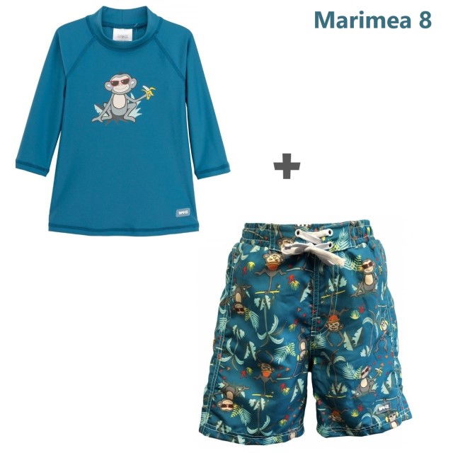 Bermude Baieti cu Protectie UV, Protectie Solara UPF50+, Petrol Jungle, Marimea 8