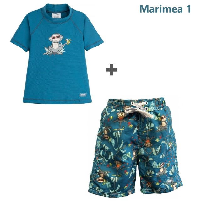 Bermude Baieti cu Protectie UV, Protectie Solara UPF50+, Petrol Jungle, Marimea 1