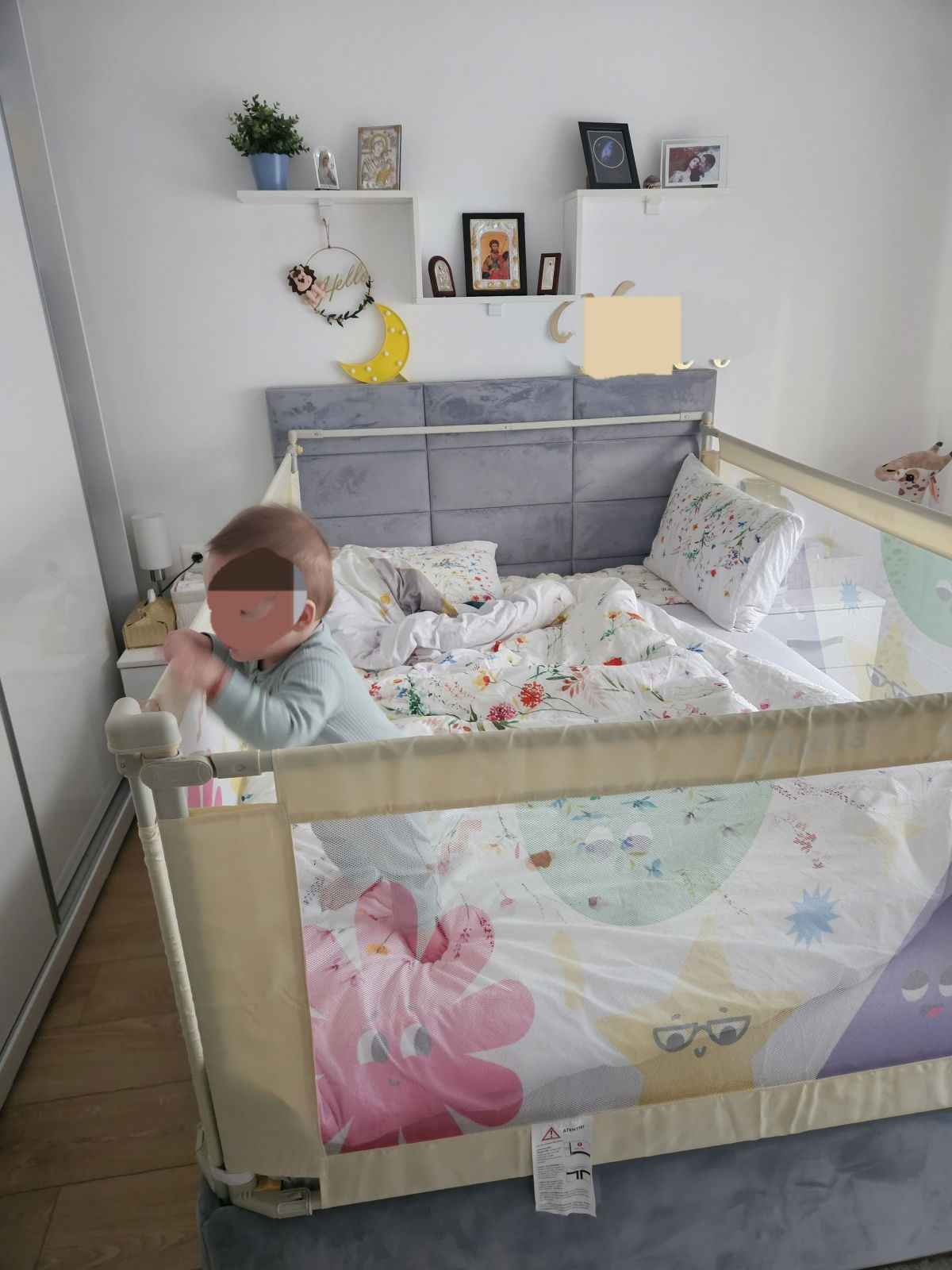 Este recomandat pentru pat 200×140: include 2 bariere de 200 cm + 1 barieră de 140 cm (3 laturi).