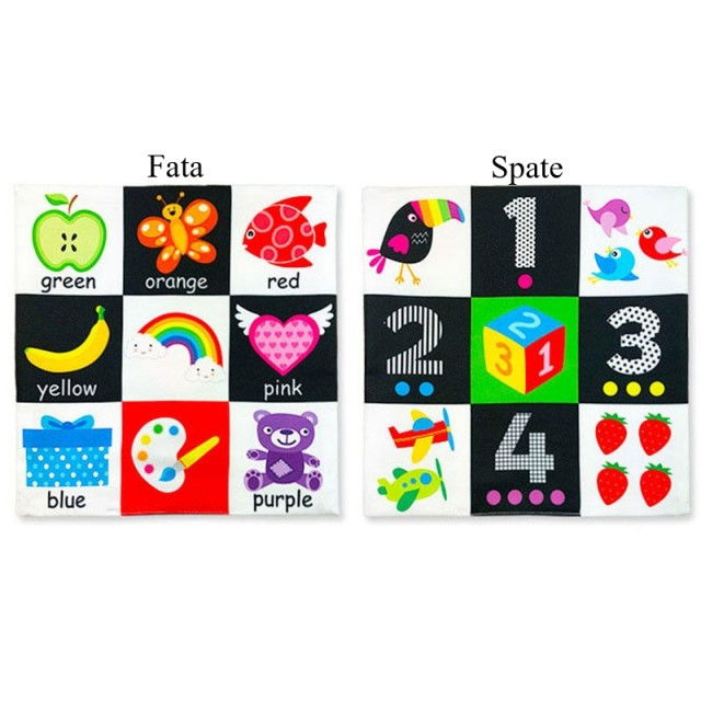 Paturica senzoriala bebe, jucarie moale educativa, 27 x 27 cm, Empria, Cifre