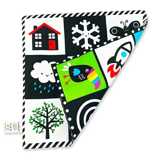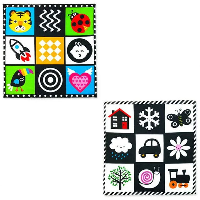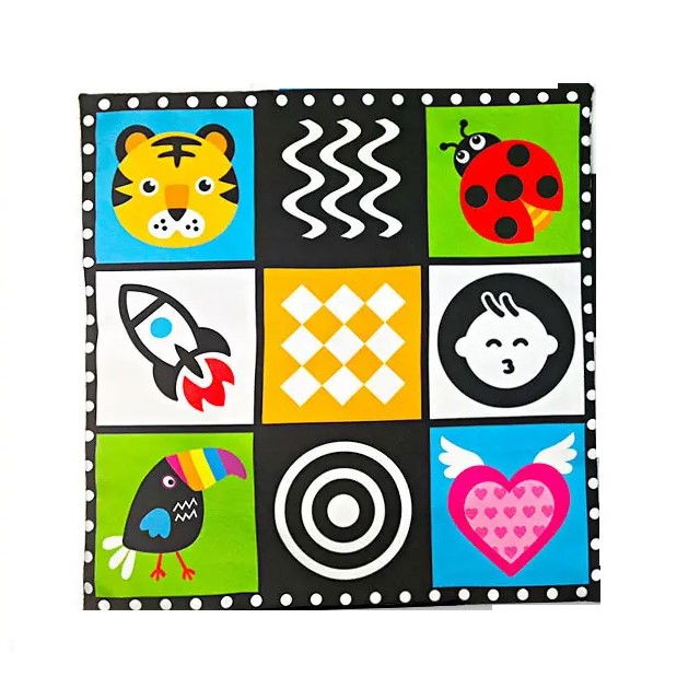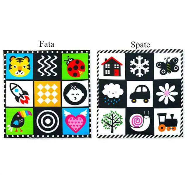 Paturica senzoriala este special conceputa pentru a dezvolta simturile copilului prin textura, culori si imagini. Cand este stransa in mana, materialul produce un fosnet, contribuind astfel la dezvoltarea simturilor auditive ale bebelusului.