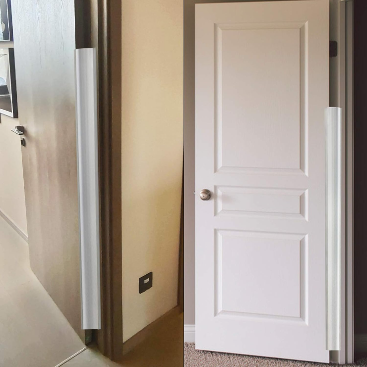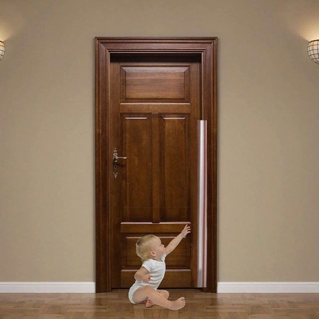 Folia este suficient de inalta pentru a asigura protectie eficienta. In acest fel cei mici nu mai au unde sa isi prinda degetele si utilizarea usii nu este stingherita.
