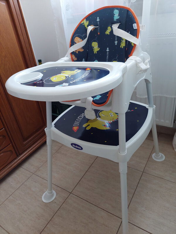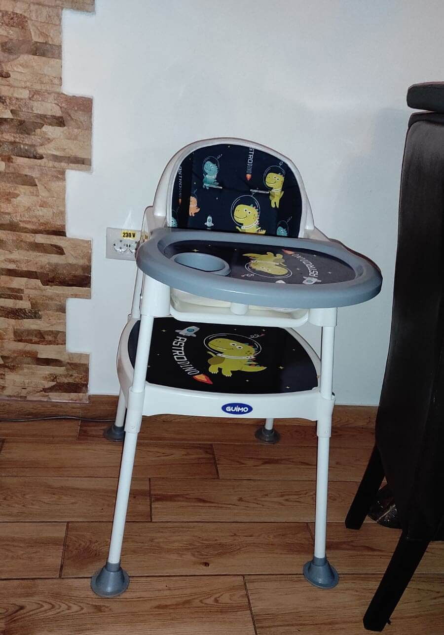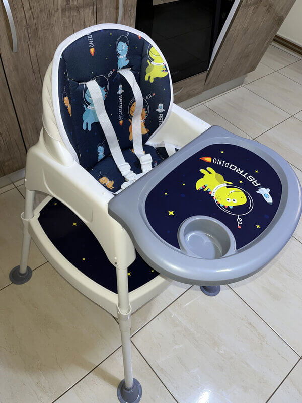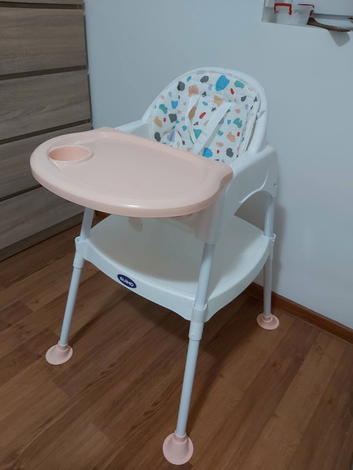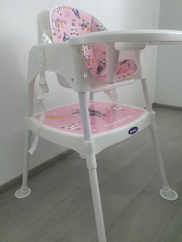 Un produs inovator, multifunctional, care se transforma cu usurinta din scaun de masa intr-un scaunel cochet si o masuta practica, perfect adaptat nevoilor copiilor si bebelusilor.
