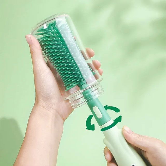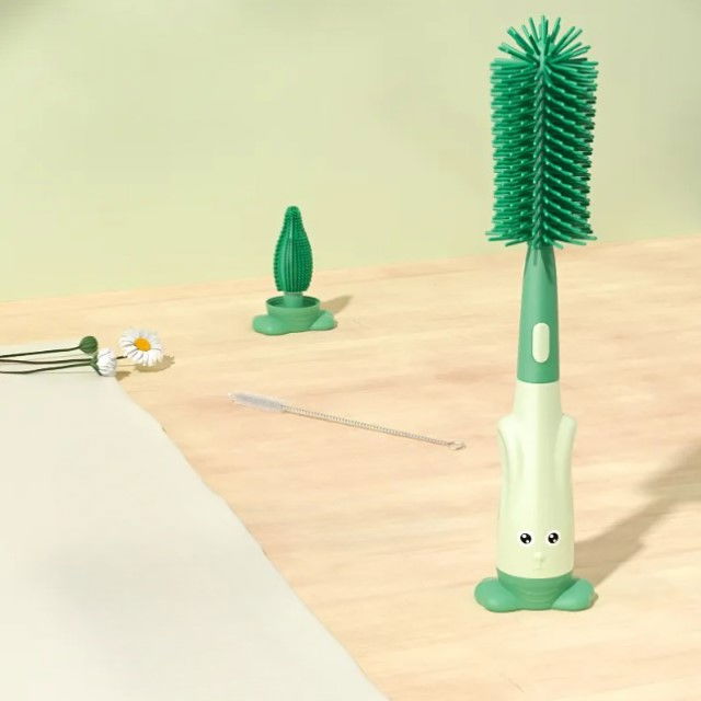 Setul 3 in 1, cu depozitare integrata ascunsa contine peria subtire si peria pentru suzeta care sunt ascunse in corp, combinate perfect cu peria pentru biberoane, usor de dezasamblat si depozitat.