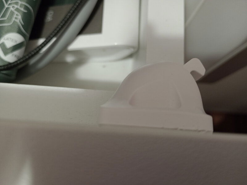Impingeti siguranta in interior iar carligul va intra, apoi mecanismul este in pozitia de deblocare. Puteti deschide sertarul.