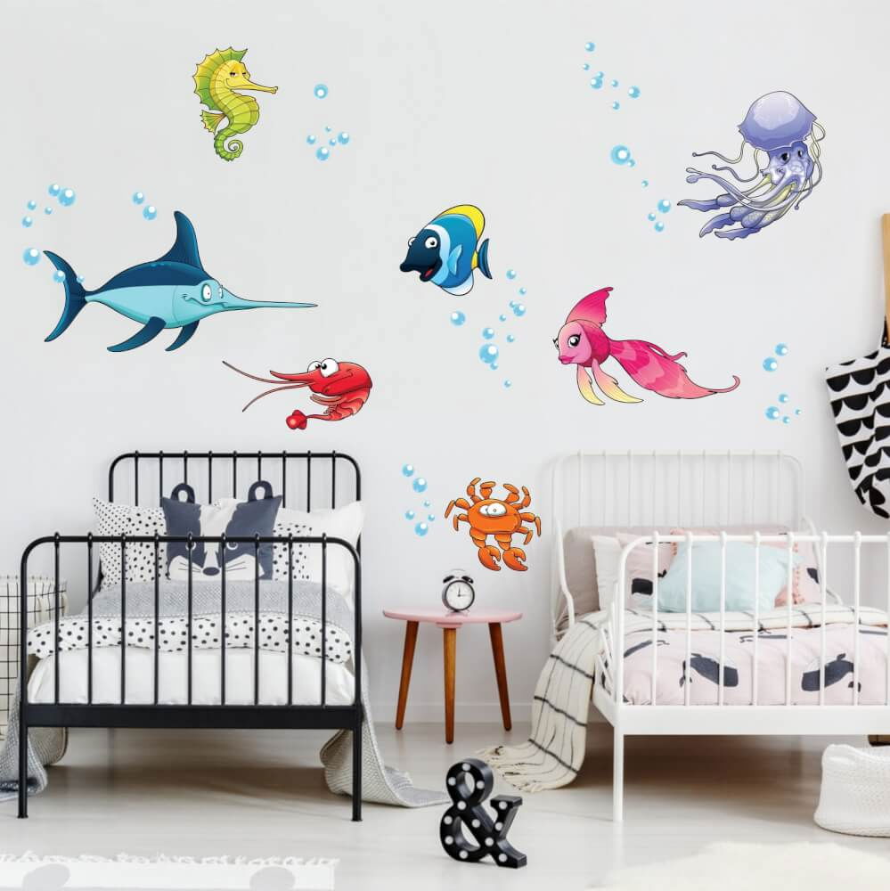 Set 7 autocolante de perete - Lumea subacvatica, Diverse Marimi