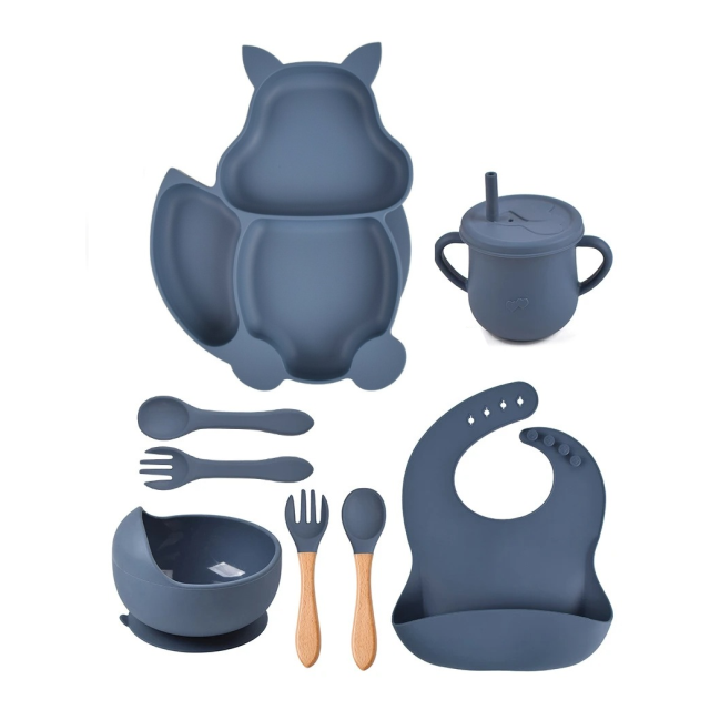 Set complet din silicon fara alergeni pentru diversificare bebe, Empria, Veverita, Albastru