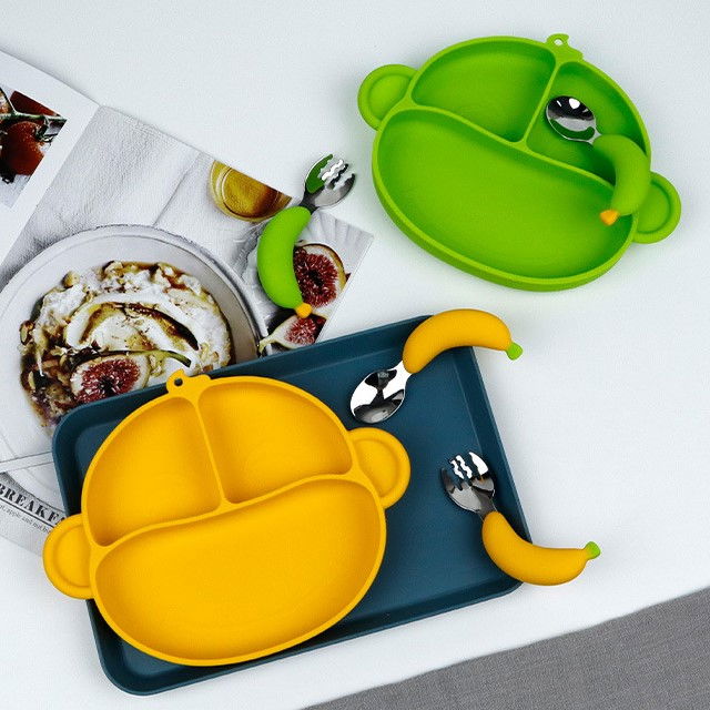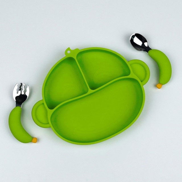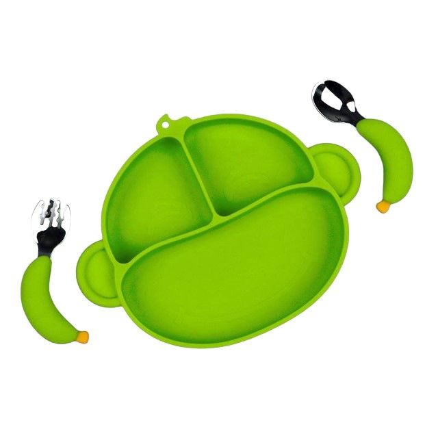 Setul de hranire este potrivit pentru bebelusi si copii, indiferent de preferinta lor pentru mana stanga, dreapta sau ambidextri. Farfuria are forma de maimutica, iar cei mici vor fi foarte incantati de acesta aspect.