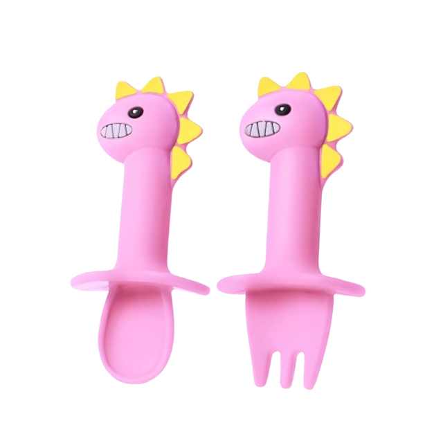 Setul contine o lingurita si o furculita cu un design foarte atragator de dinozaur. Tacamurile sunt foarte usoare, au o textura moale, special concepute pentru protejarea gingiilor.