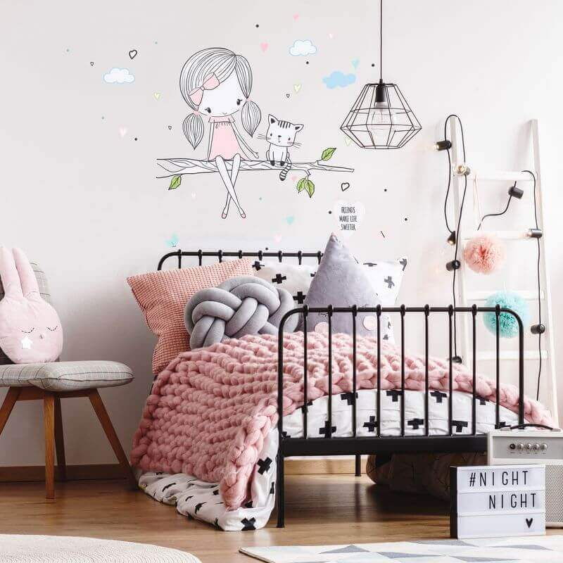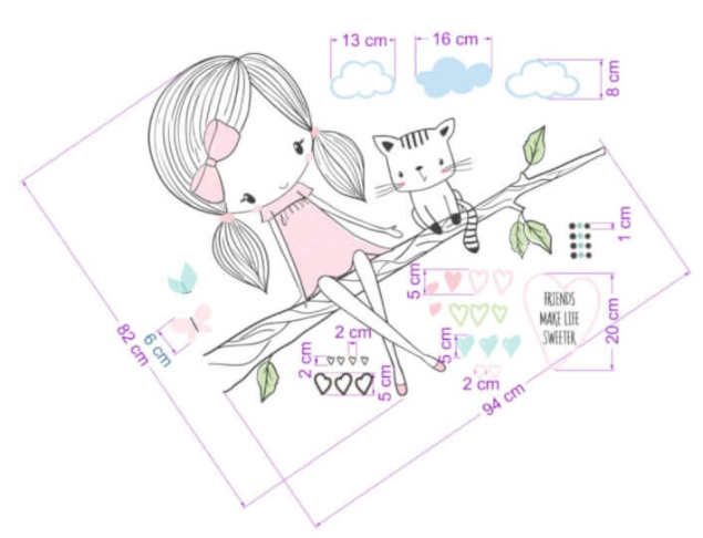 Cumpara Sticker perete Zana INSPIO pe o ramura cu o pisica roz, 81 x 94 cm de la Empria.ro pentru o casa vesela!