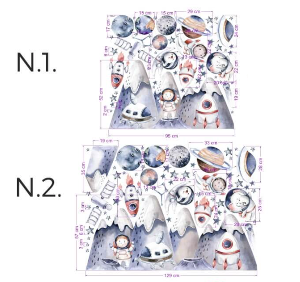 Design: Include astronauti si elemente spatiale variate, oferind un decor dinamic si educativ.