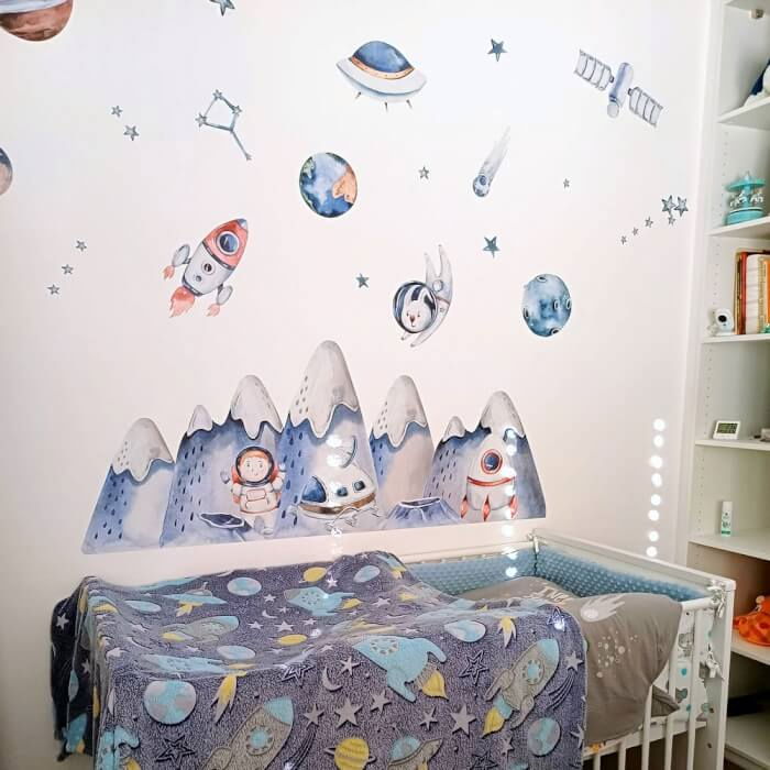 Lanseaza imaginatia baietilor tai in spatiu! Acest autocolant de perete de la INSPIO, disponibil prin Empria, transforma orice camera intr-un centru de comanda spatial, perfect pentru tinerii exploratori ai universului. Decorul vibrant si captivant ii va incuraja pe copii sa viseze la stele si la aventurile din spatiul cosmic.