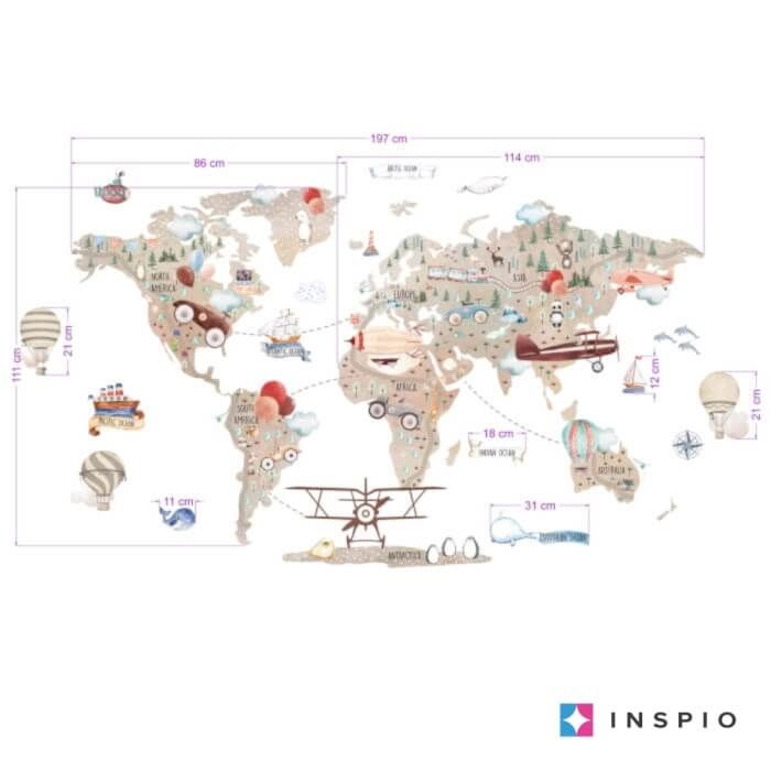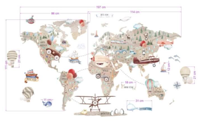 - 1 autocolant mare cu harta lumii, dimensiuni 127 x 198 cm
