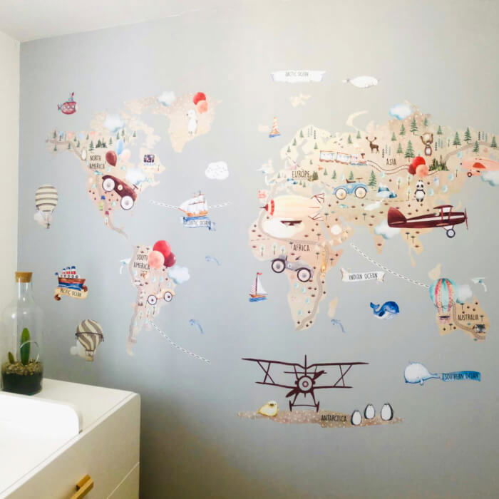 Harta maro a lumii pentru micii aventurieri, 127 x 198 cm este perfecta pentru orice spatiu, adaugand un strop de personalitate si stil. Fabricata din materiale de inalta calitate, este ideala pentru a imbunatati decorul si a crea o atmosfera placuta in casa ta. Usor de aplicat si de intretinut, acest autocolant transforma orice camera intr-un colt de paradis.