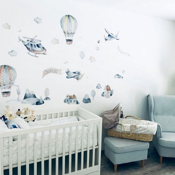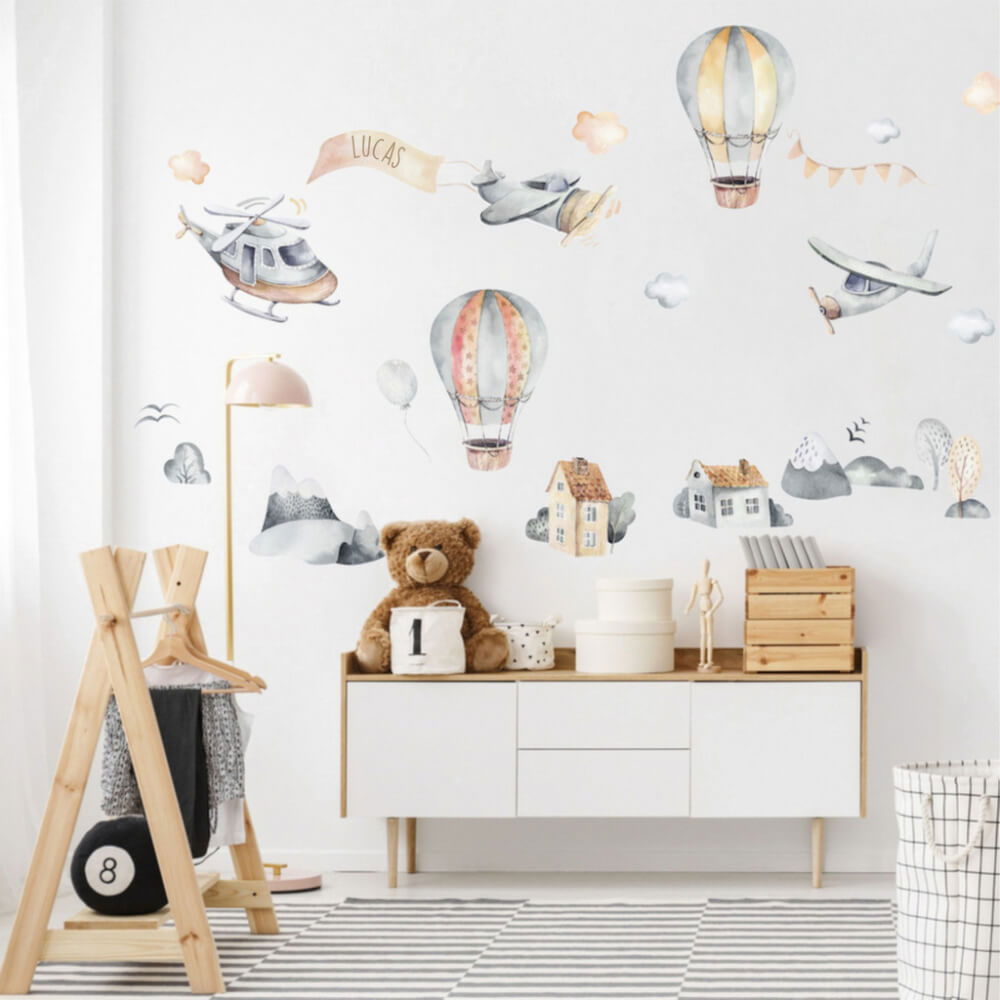Design: Avioane si nume personalizabile in nuante de gri, perfecte pentru a aduce un strop de veselie si creativitate in orice incapere.