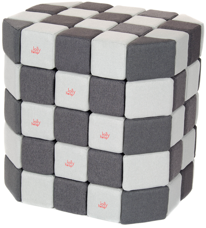 Dacă aranjezi 100 de cuburi pe perete, așa cum este arătat în imagine, dimensiunile totale vor fi de 60×240 cm.Structuri JollyHeap BASIC Obstacole si mobilier