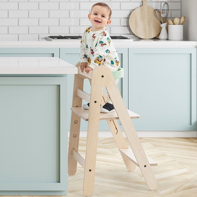 Fie ca e vorba de spalatul pe maini, de ajutorul in bucatarie sau de explorarea lucrurilor aflate la inaltime, acest turn de invatare le ofera micutilor posibilitatea de a interactiona cu tot ce se intampla prin casa.
