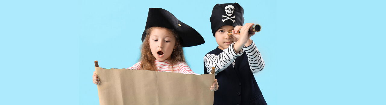 Decor: Folosește steaguri cu cranii, hărți vechi, cutii de comori și rețele de pescuit pentru a recrea o navă pirat sau o insulă misterioasă.