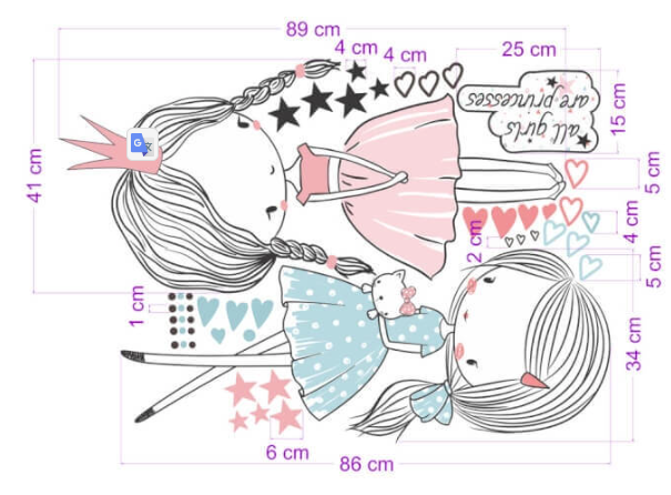 Autocolante de Perete: Zâne în culoarea mentei și roz pudrat, 90 cm